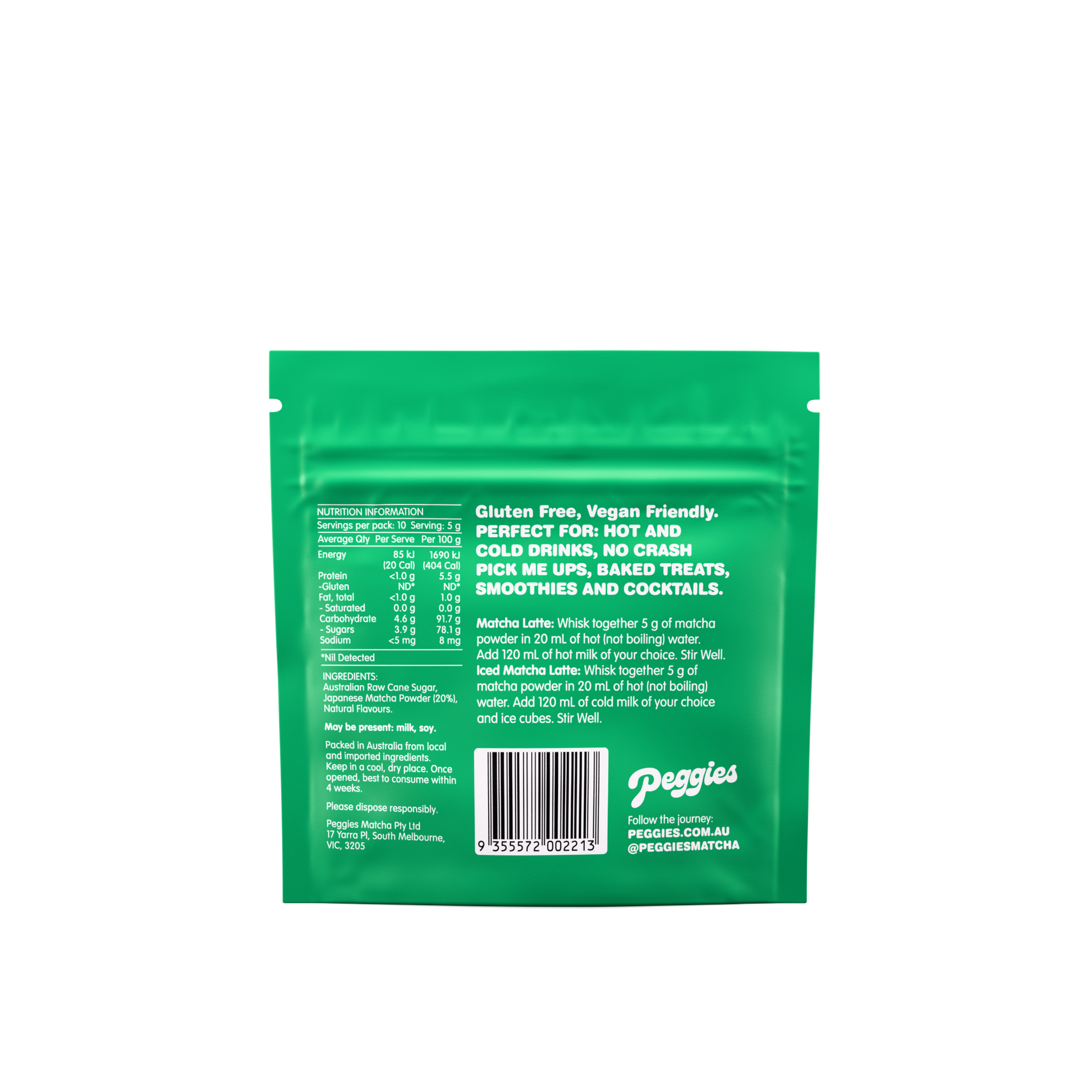 Fresh focus and steady energy, flavoured with a juicy peach. Peggie’s Japanese Matcha is made to brighten your mornings and fuel your day with calm clarity. Every sip balances flavour and function for a ritual you’ll look forward to.
